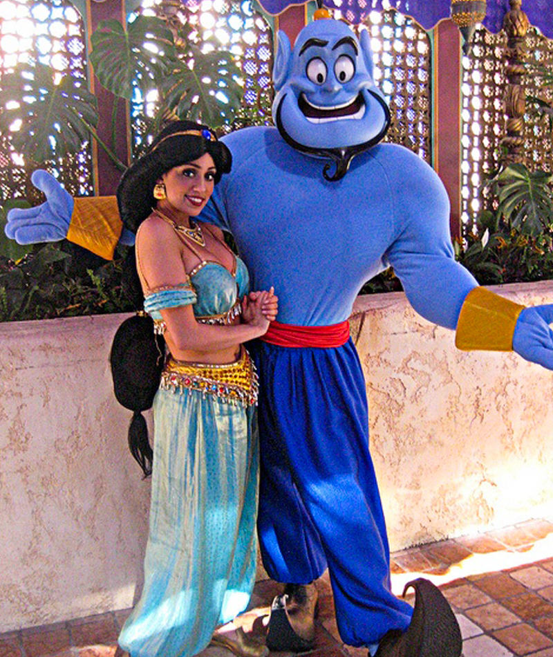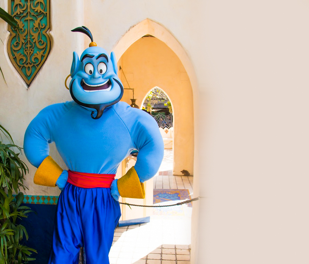 As well as largely driving the plot in the first film, the Genie serves as comic relief in each of his appearances. He is shown to have unlimited shapeshifting abilities, which allow for many and varied sight gags; however, he is unable to kill anyone, make anyone fall in love, fully revive the dead, or provide additional wishes. The Genie’s supernatural abilities permit him to break the fourth wall, as well as parody real-life people and popular culture completely beyond the boundaries of his native universe.